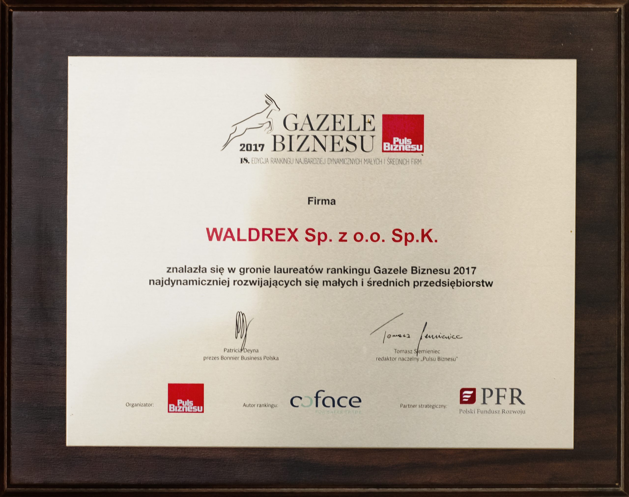 Membership of WALDREX in the elite Business Gazelles club, a group of the most dynamically developing companies.