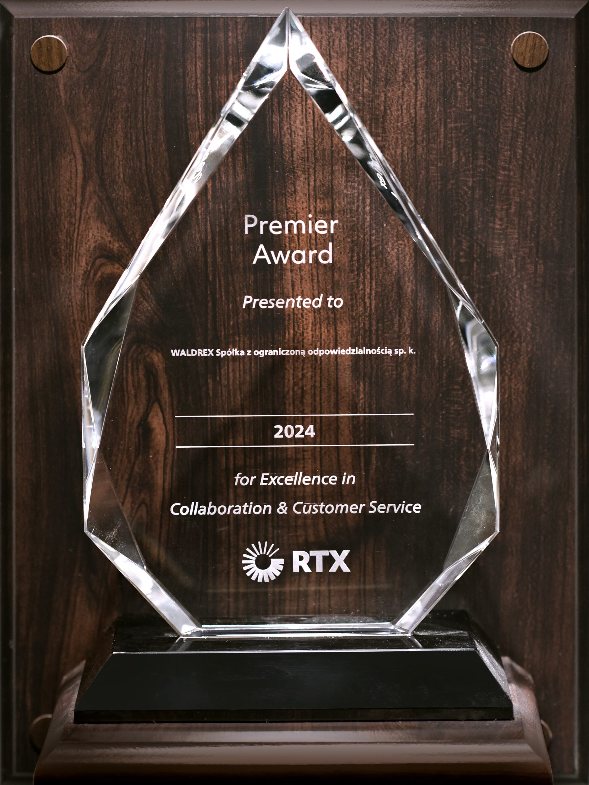 In 2024, RTX honored WALDREX with the Premier Award for performance in the Collaboration and Customer Service category. The Premier Award is an annual recognition within the RTX Performance Program, presented to suppliers who achieve top-tier performance and exceptional value.